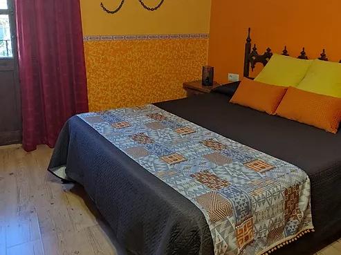 Baño privado, Habitación doble con cama de matrimonio, TV y wifi, Zona común con piscina y barbacoa , en temporada de verano .