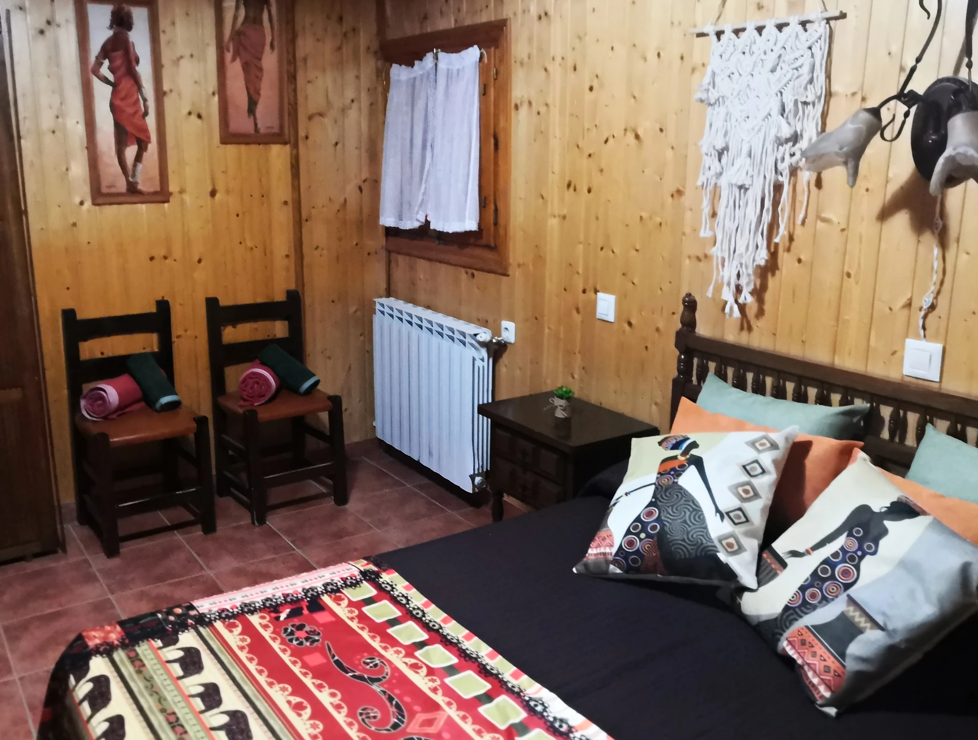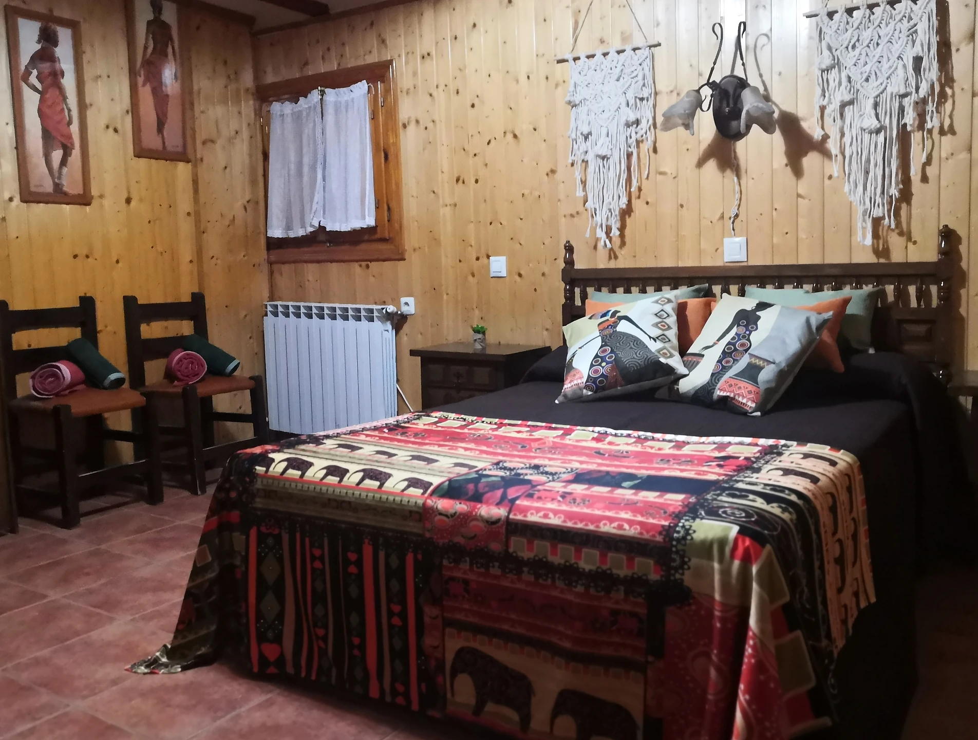 Una habitación doble con cama de matrimonio, perfecta para un descanso cómodo y tranquilo. También disponemos de una habitación doble con dos camas individuales, ideal para quienes prefieren camas separadas.