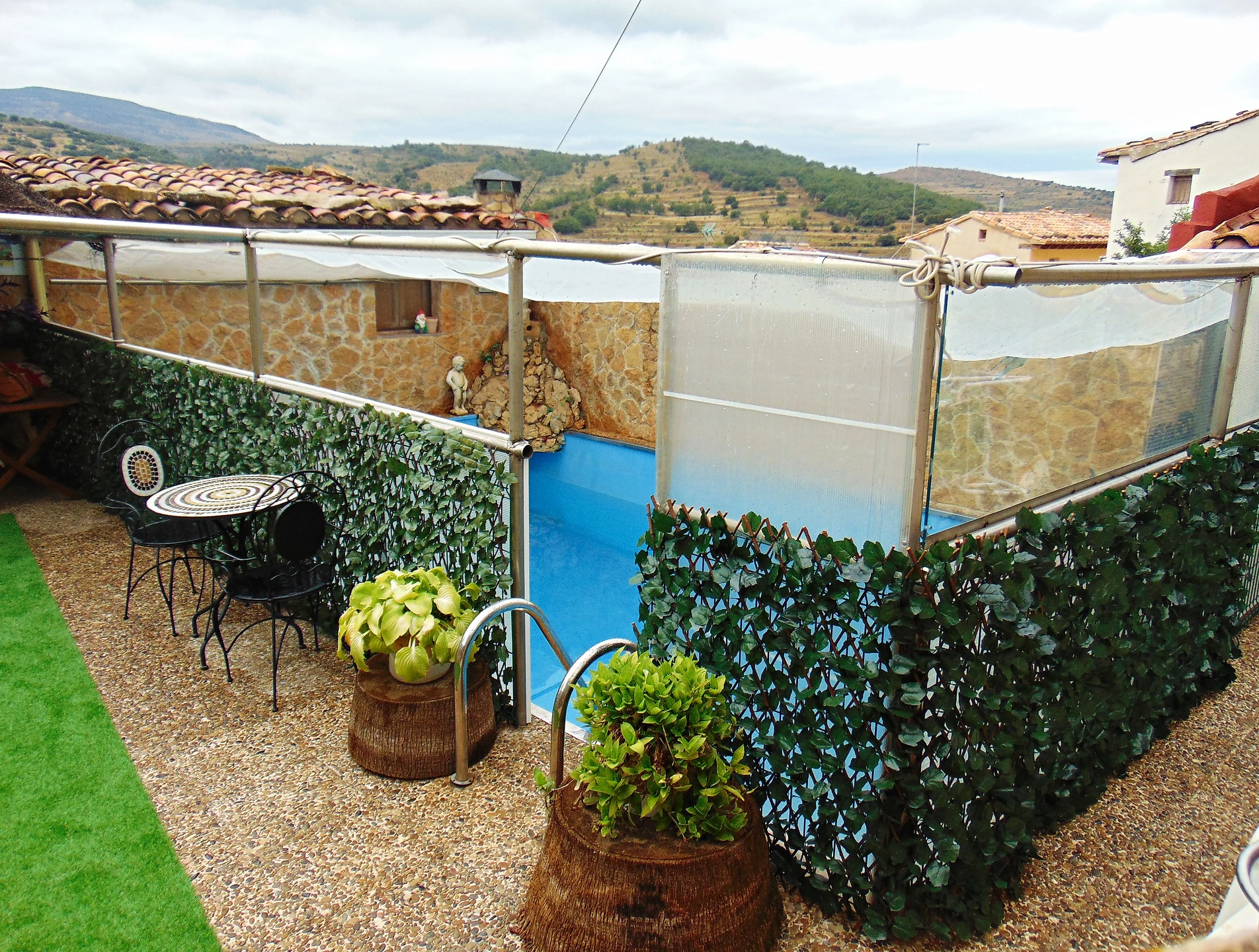 Apartamento rural en Tronchón | Cocina y comedor privados, habitaciones dobles y zona común con piscina y barbacoa
