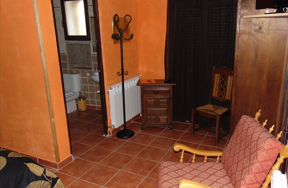 Disfruta de una habitación doble con cama de matrimonio en nuestro alojamiento rural en Teruel, diseñada para ofrecerte una estancia cómoda y relajante. Con todas las comodidades necesarias, es el lugar ideal para una escapada tranquila.