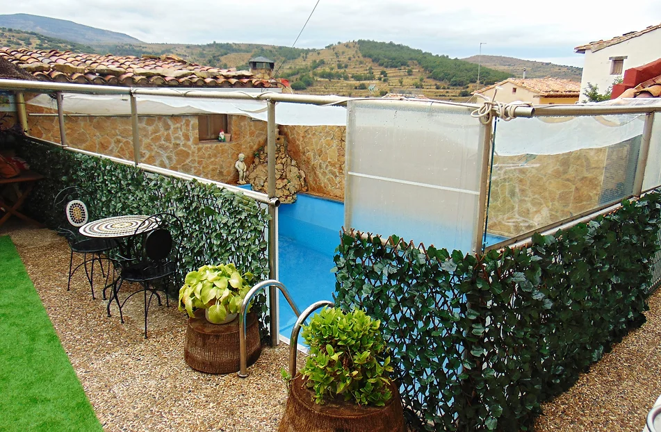 Reserva ahora tu habitación doble con baño privado en Tronchón y disfruta de nuestras zonas comunes con piscina y barbacoa en temporada de verano.